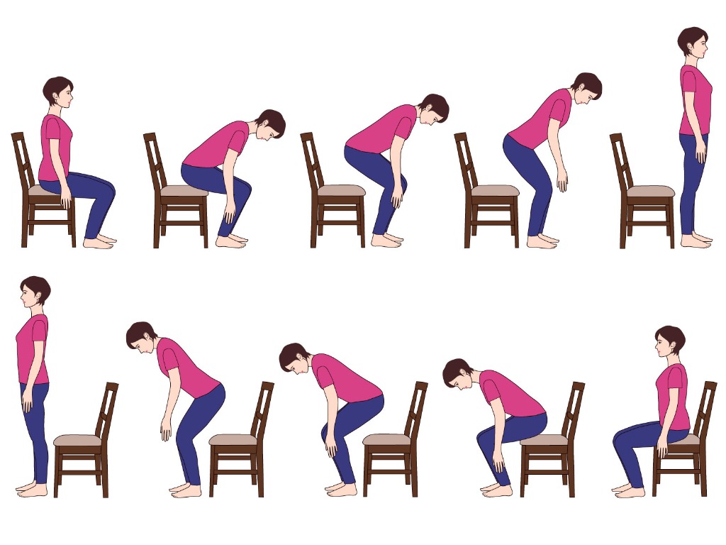 股関節を曲げる代わりに背中を丸めて椅子から立ち上がろうとして